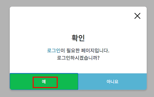 아이디와 비번이 있다면 로그인이 필요하고 없으시다면 회원가입을 해야 신청할 수 있습니다. 아래의 예 버튼 클릭후 회원가입을 선택합니다. 회원 가입하기 페이지에서 모든 약관에 동의 표시 하시고 하단의 동의 버튼을 클릭합니다.