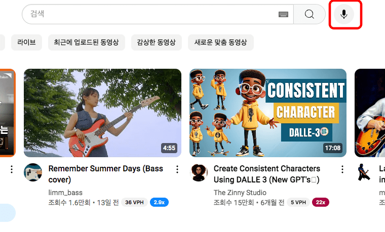 만약 노래를 부르는 것에 자신이 있다면 유튜브 음성 검색을 이용해도 좋습니다. 검색창 우측의 마이크 아이콘을 클릭하면 컴퓨터나 모바일에서 마이크 활성화 여부를 묻는 메시지가 표시됩니다. 활성화시킨 후 노래를 부르면 유튜브에서 찾고자 하는 곡을 검색해 주니 직접 시도해 보시기 바랍니다.