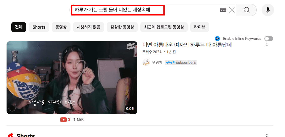 노래가사로 제목찾기 1 - 유튜브 검색