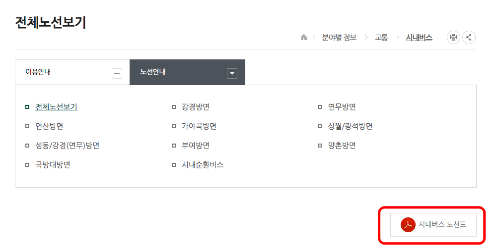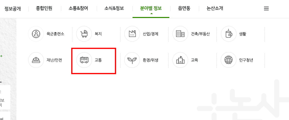 논산시청 홈페이지 대중 교통 정보