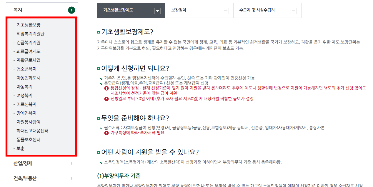 논산시에서 제공하는 복지는 기초생활보장, 긴급복지, 의료급여, 청소년복지, 아동복지, 여성 복지 등이므로 좌측 메뉴에서 원하는 복지 정보를 확인할 수 있습니다.