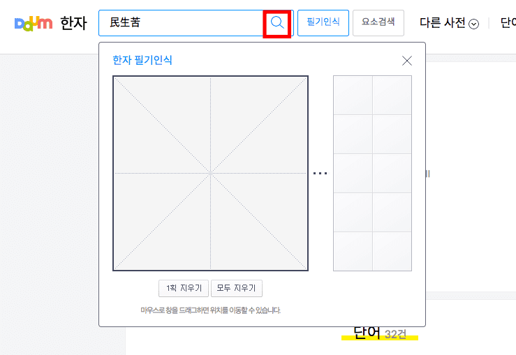 다음 한자 그려서 찾기 (PC 및 모바일)