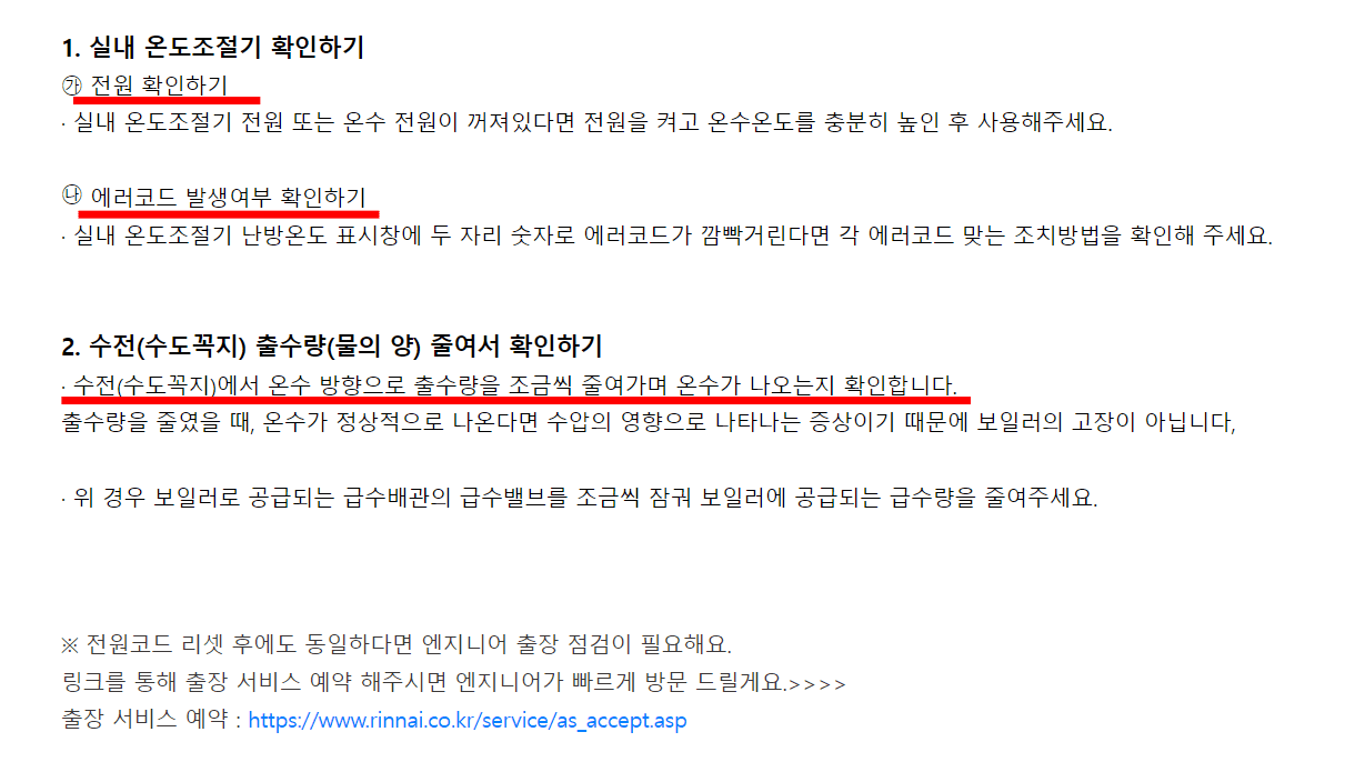 린나이보일러 서비스센터 문제 직접 해결 방법