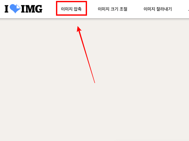 간혹 이미지 압축이 더 가능한 이미지 파일들이 있으니 다시 한번 재압축을 시도해 보도록 하겠습니다. 사이트 좌측 상단의 이미지 압축 메뉴를 클릭합니다.