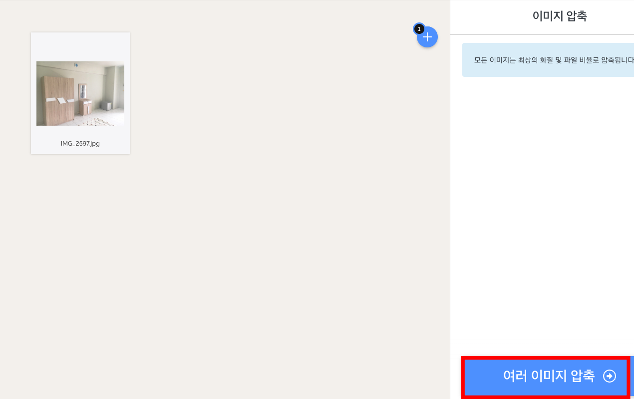 메인 화면에서 표시된 영역에 압축을 원하는 이미지 파일을 드롭하거나 클릭합니다.