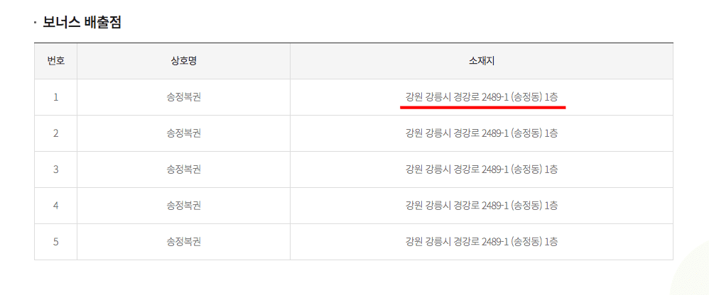 이후 아래를 보시면 당첨판매점 조회와 미수령 당첨금에 대한 정보를 확인할 수 있습니다. 먼저 당첨판매점 조회를 클릭해보면 연금복권 메뉴에서 회차를 선택하시고 하단의 조회 버튼을 클릭합니다. 조회결과를 보시면 1등 배출점과 2등 배출점이 모두 같은 곳임을 확인할 수 있습니다. 보너스 배출점도 소재지는 다르지만 같은 배출점에서 여러 명의 당첨자가 나왔다는 것을 확인할 수 있습니다.
