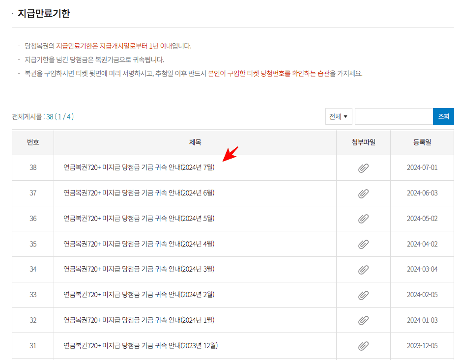 미수령 당첨금을 클릭하시면 미지급 당첨금 기금 귀속 안내 자료를 열람 할 수 있습니다. 최신 게시물을 클릭하고 첨부파일에서 엑셀 파일을 저장하면 미지급 당첨금 귀속 자료를 확인할 수 있으니 직접 해보시기 바랍니다.