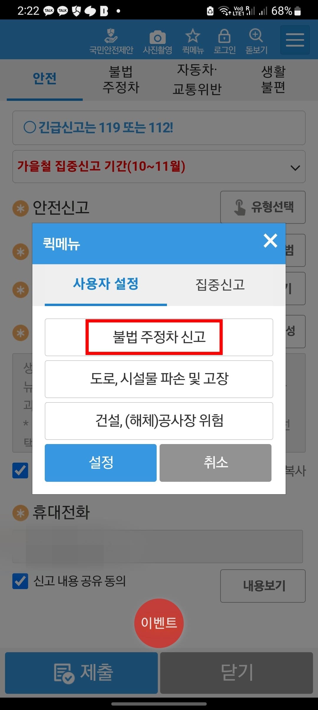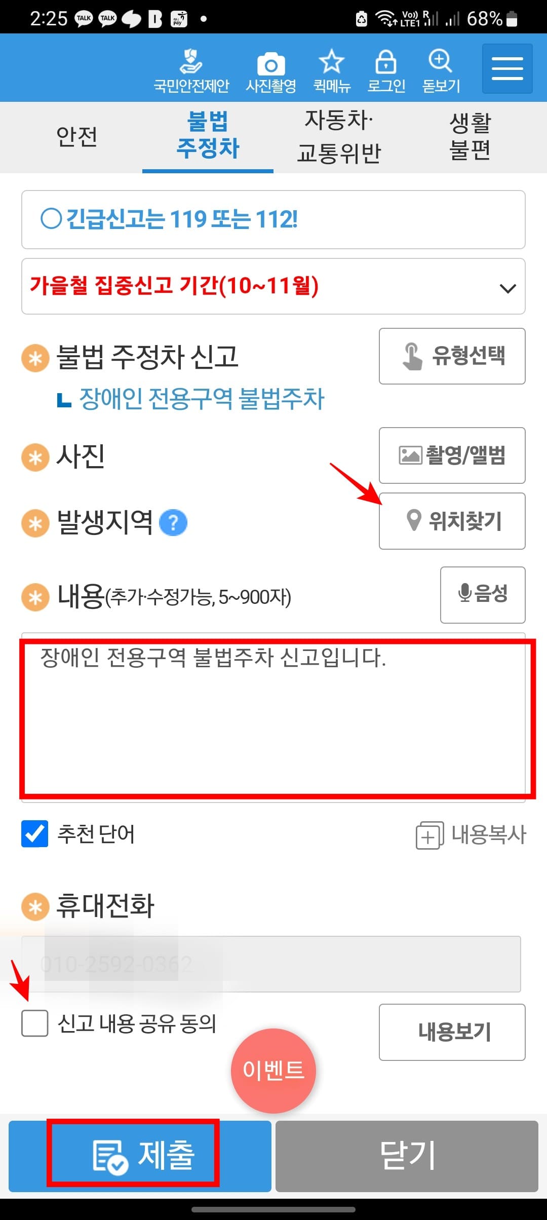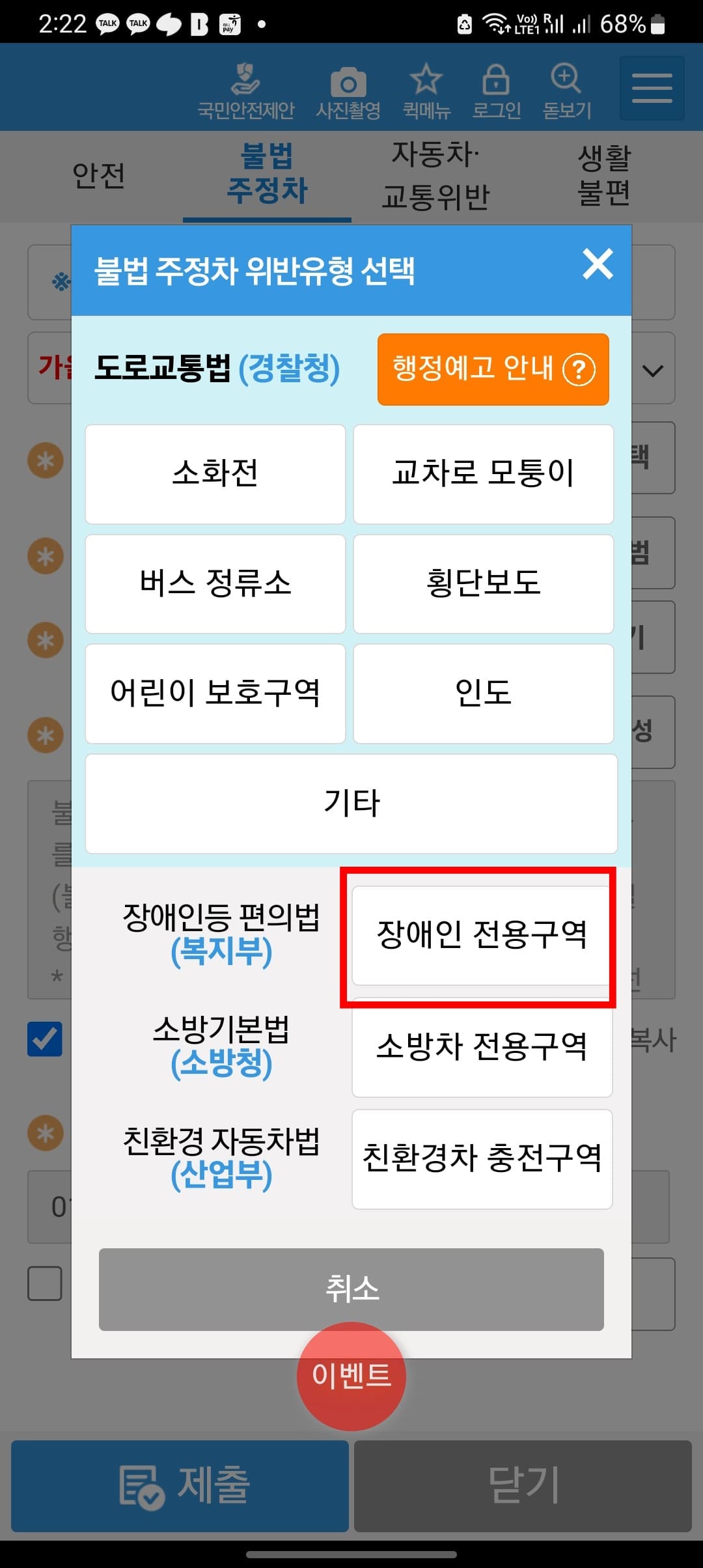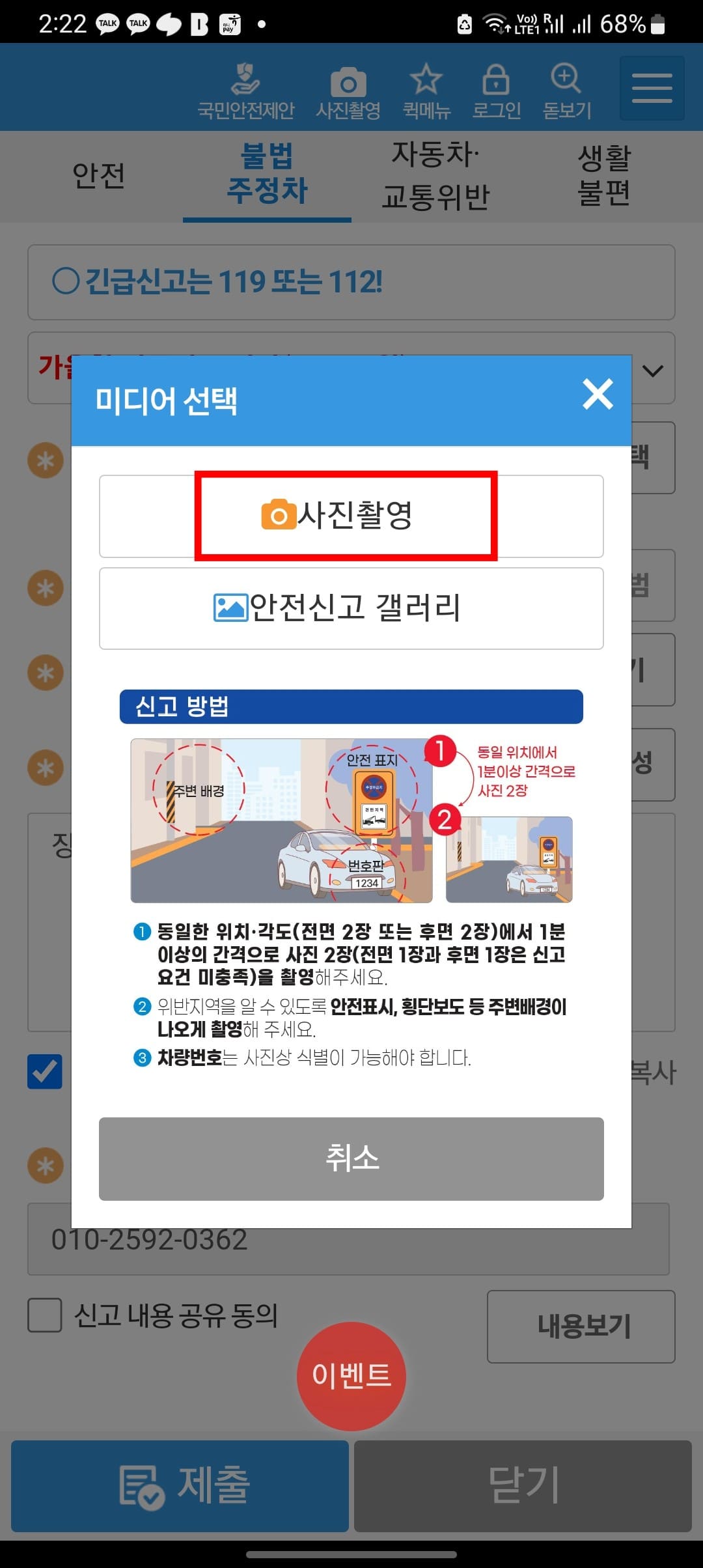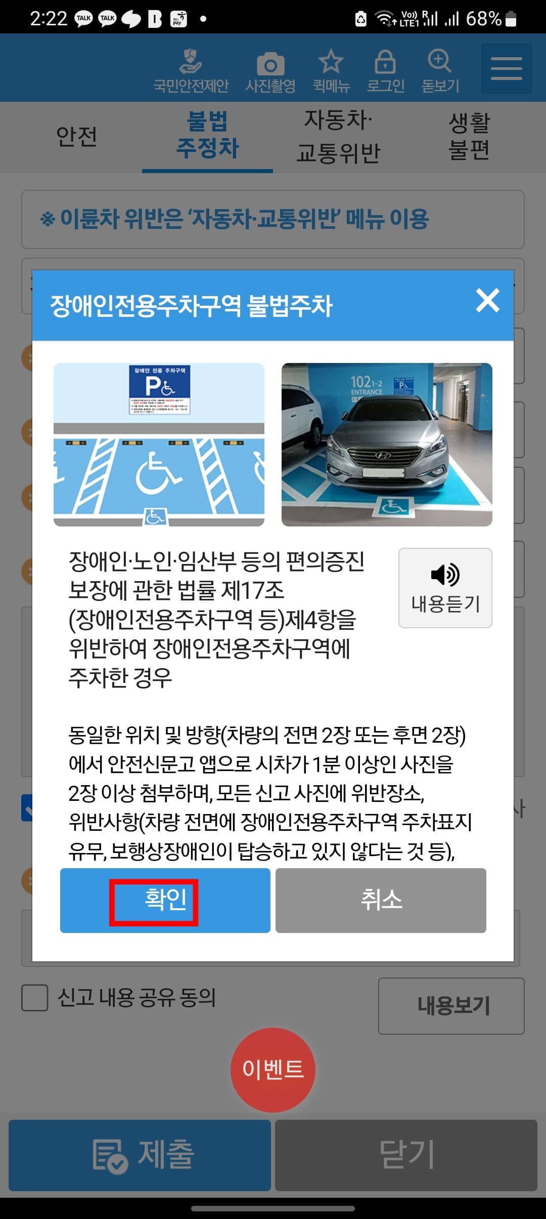 모바일 장애인 주차구역 위반 신고 방법