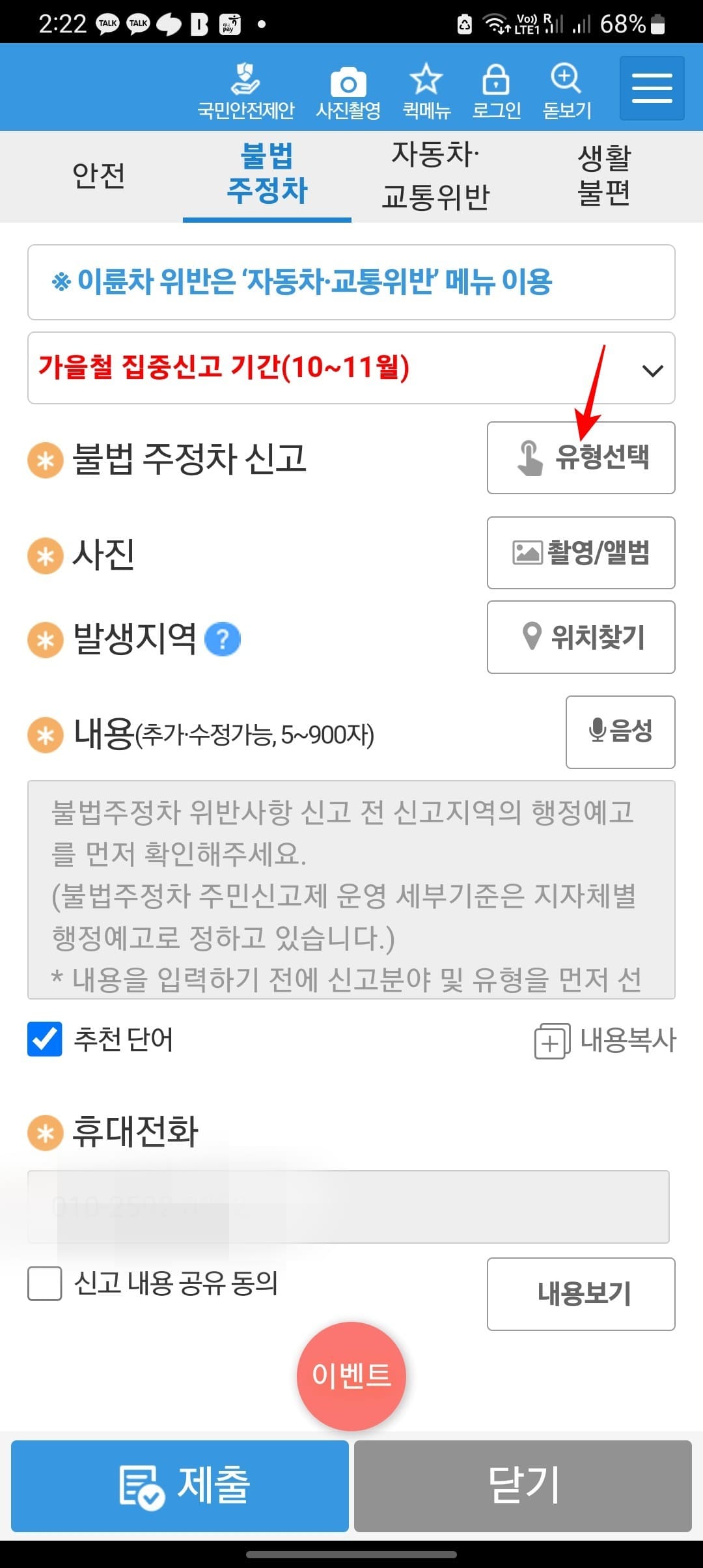 모바일 장애인 주차구역 위반 신고 방법