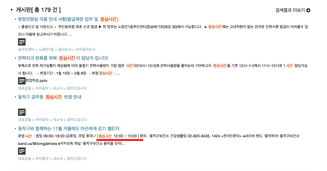 점심시간이 포함된 게시물을 보다보면 위의 이미지처럼 점심시간이 표시되어 있는 글을 찾을 수 있으니 직접 확인해 보시기 바랍니다.