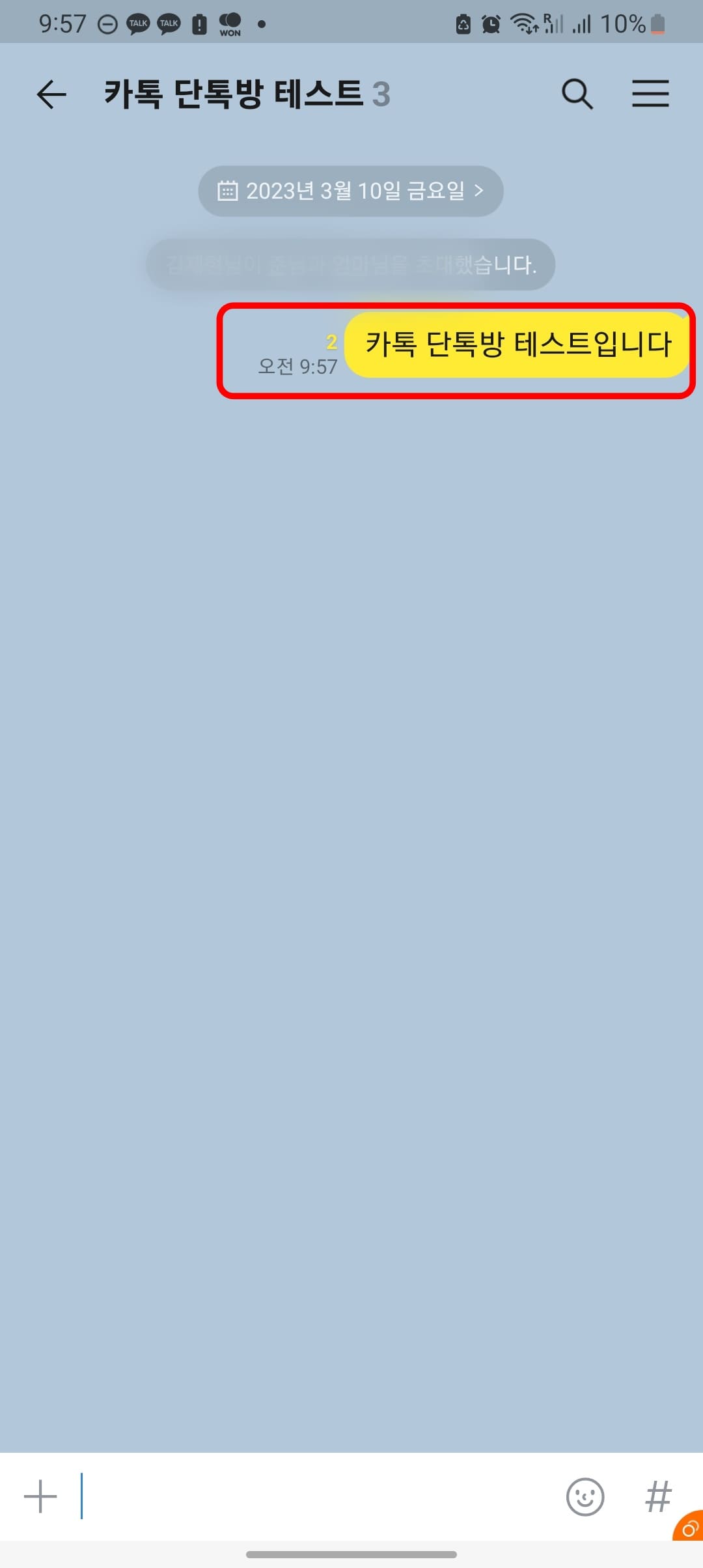 이렇게 1:1 채팅방이 3명의 인원이 참여된 그룹채팅방으로 전환되었습니다. 마찬가지로 하단에서 아무 메시지나 보내게 되면 본격적으로 단톡방이 활성화 되게 됩니다.