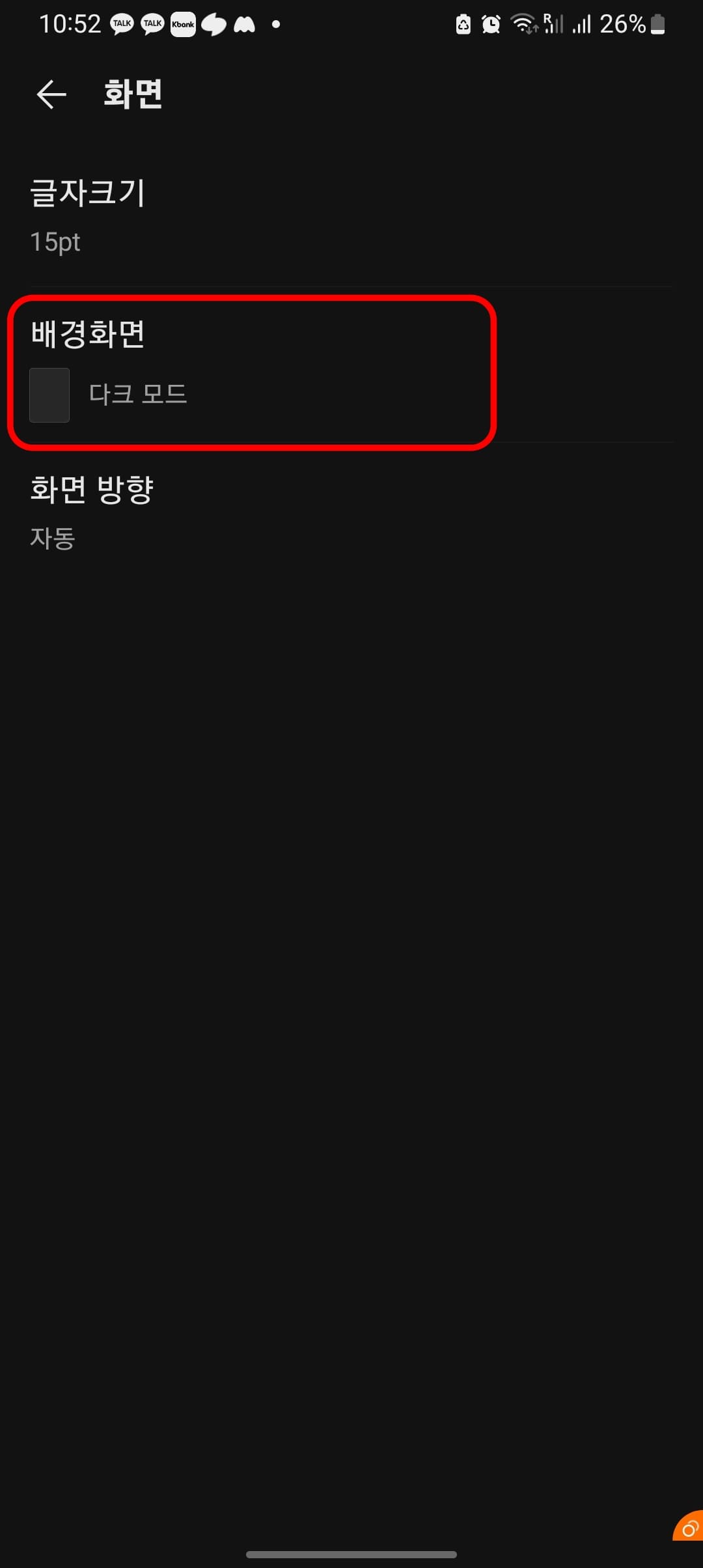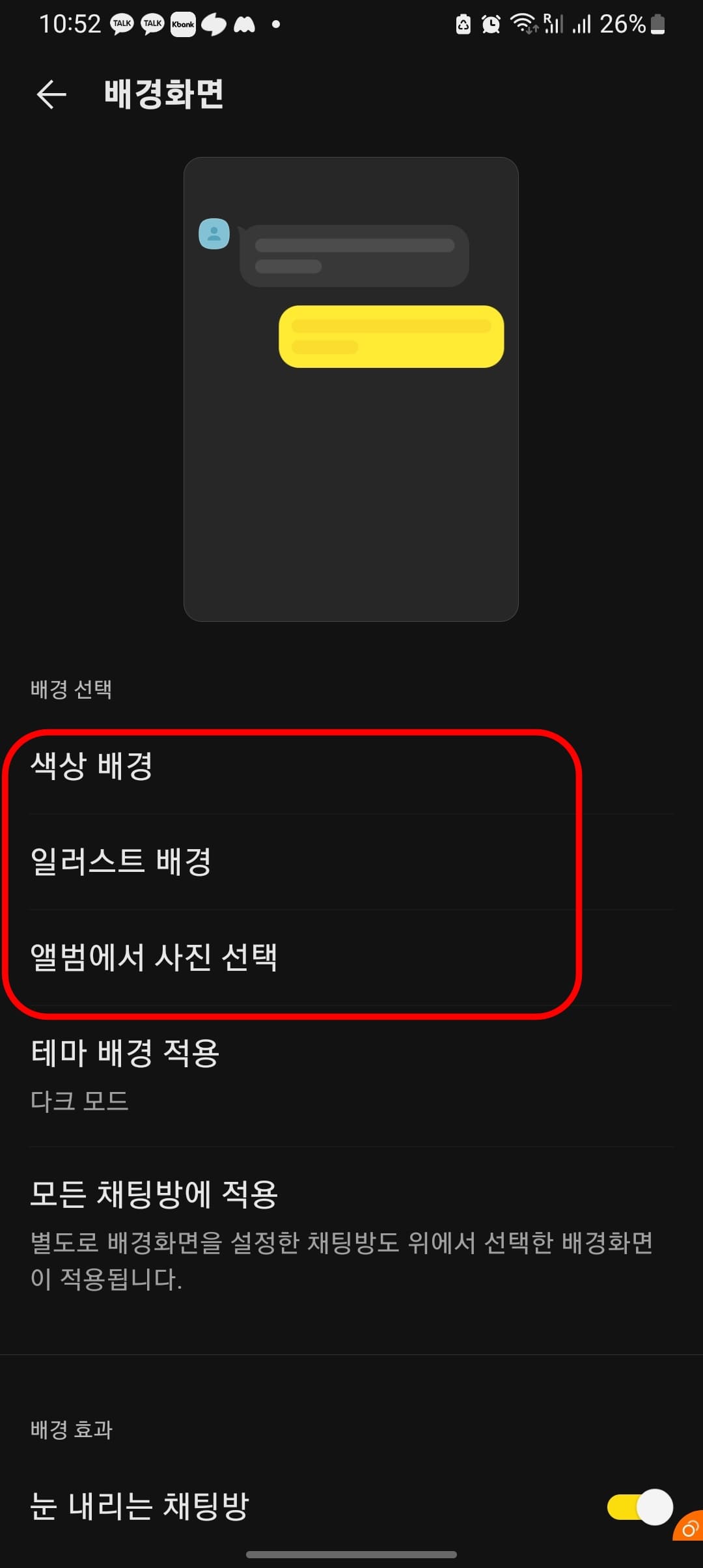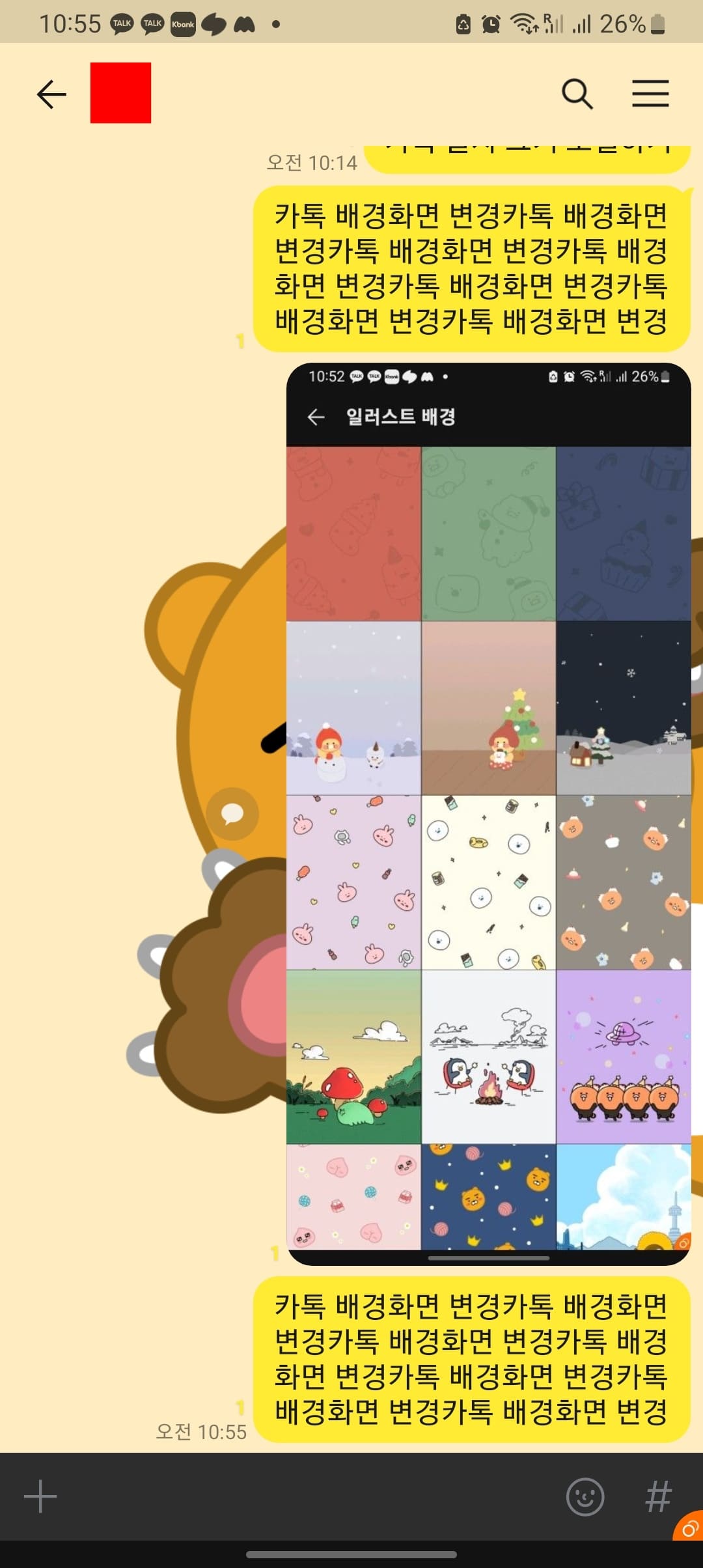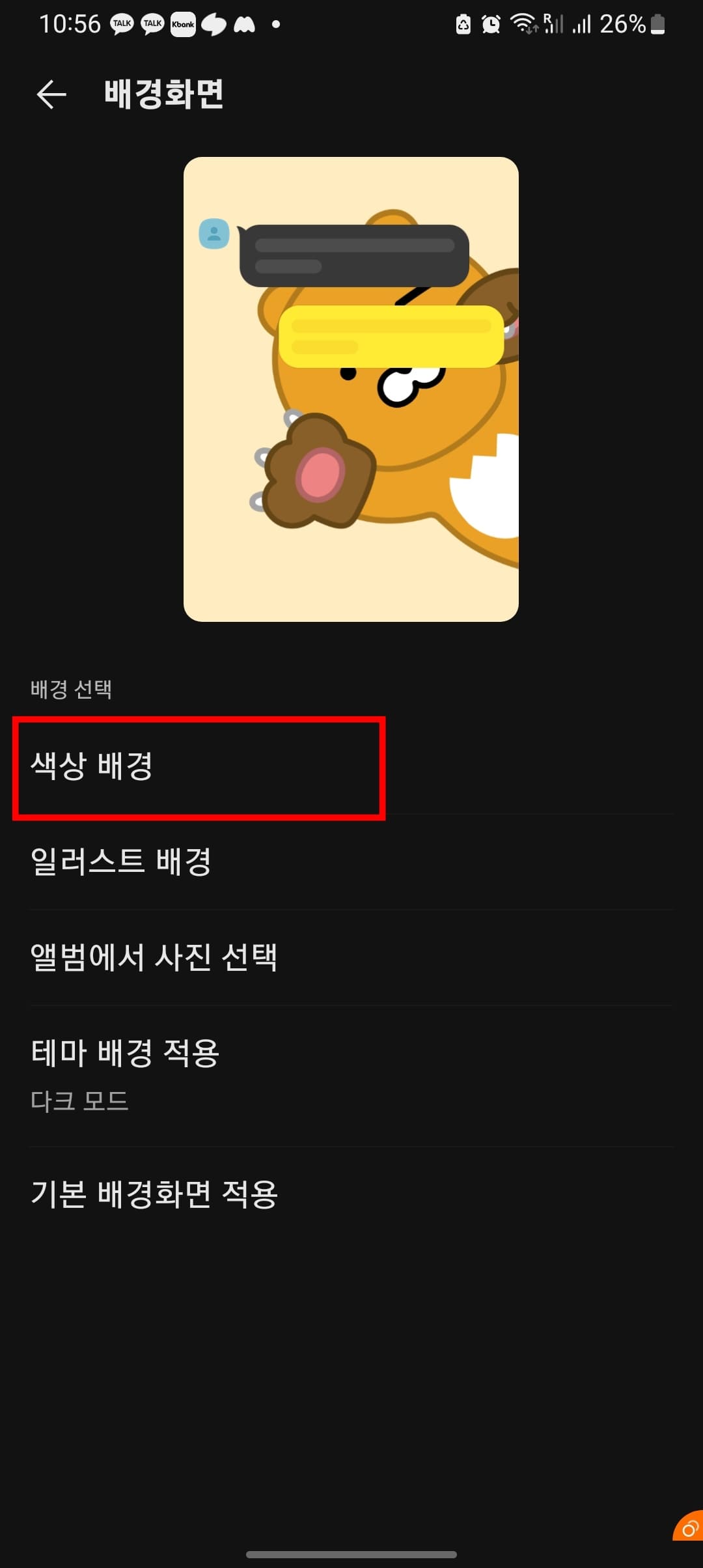 채팅방으로 돌아가 확인하면 색상 변경 배경화면이 적용된 것을 확인할 수 있습니다.