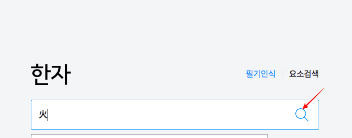 대충 유사한 한자가 그려지면 우측에 유사한 한자들이 표시됩니다. 찾고자 하는 한자를 선택하면 검색창에 해당 한자가 자동으로 입력됩니다. 이후 우측 돋보기 아이콘을 클릭합니다.