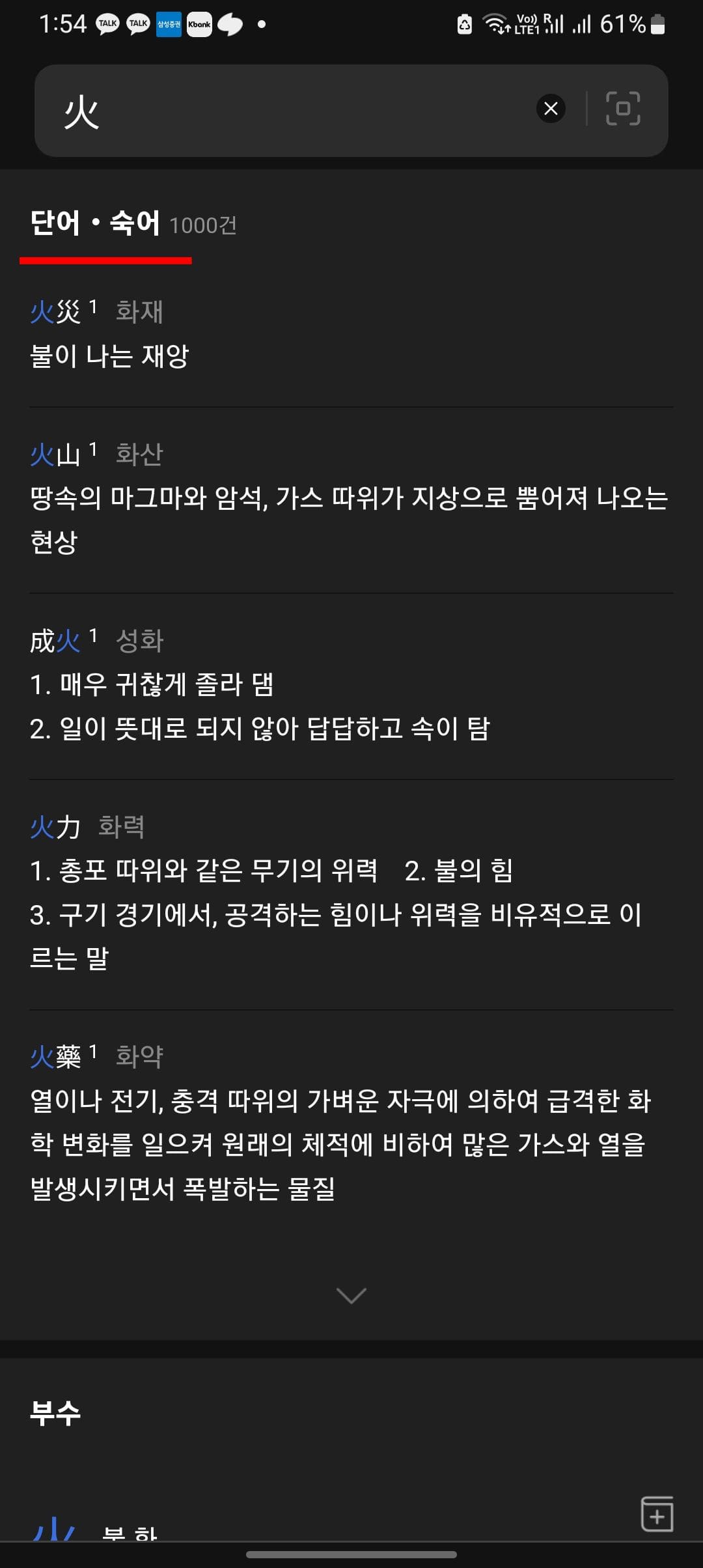스크롤을 내리면 "불 화" 가 부수로 사용된 한자들을 찾아볼 수 있습니다.