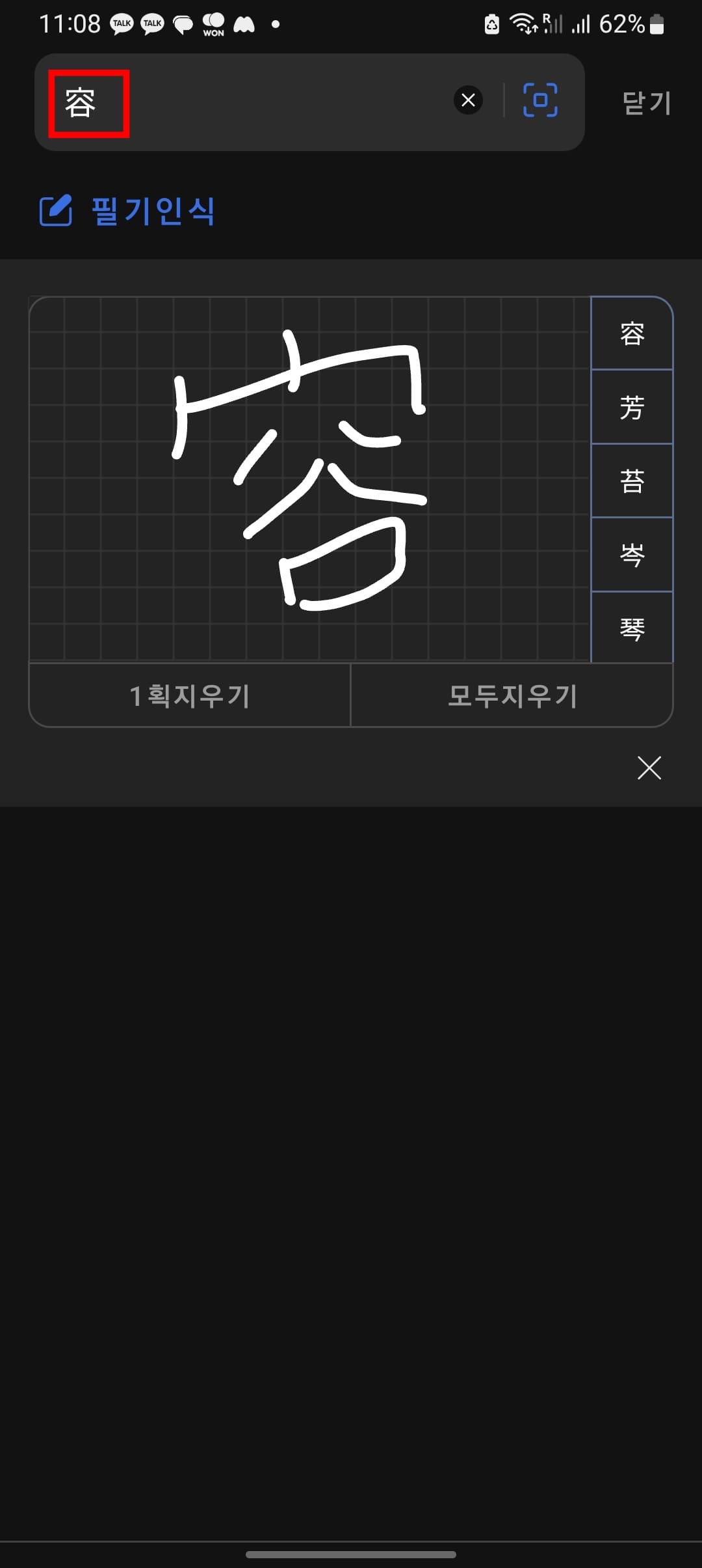 모바일 한자 써서 찾기
