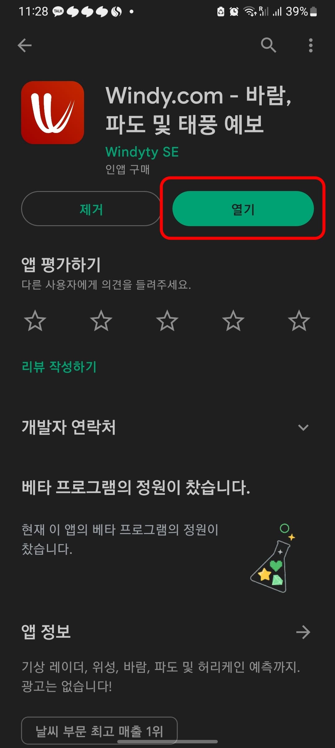 현 위치의 바람이나 대기 오염도 태풍 등의 이동 경로를 자세히 알려주는 어플은 윈디 어플입니다. 먼저 어플 설치가 필요하니 아래 링크를 통해 설치하시기 바랍니다.