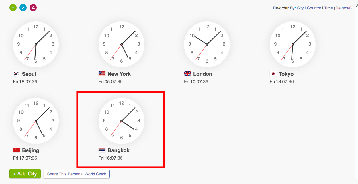 다시 시계 화면으로 돌아가 보면 방콕의 현재시간을 초단위로 확인이 가능해진 것을 볼 수 있습니다.