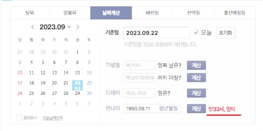 해당 페이지에 방문하시면 위와 같은 화면을 볼 수 있습니다. 기준일이 오늘도 되어 있다면 하단의 만 나이 입력란에 자신의 생년월일을 입력합니다. 이후 우측의 계산 버튼을 클릭하면 결과를 쉽게 확인할 수 있습니다.