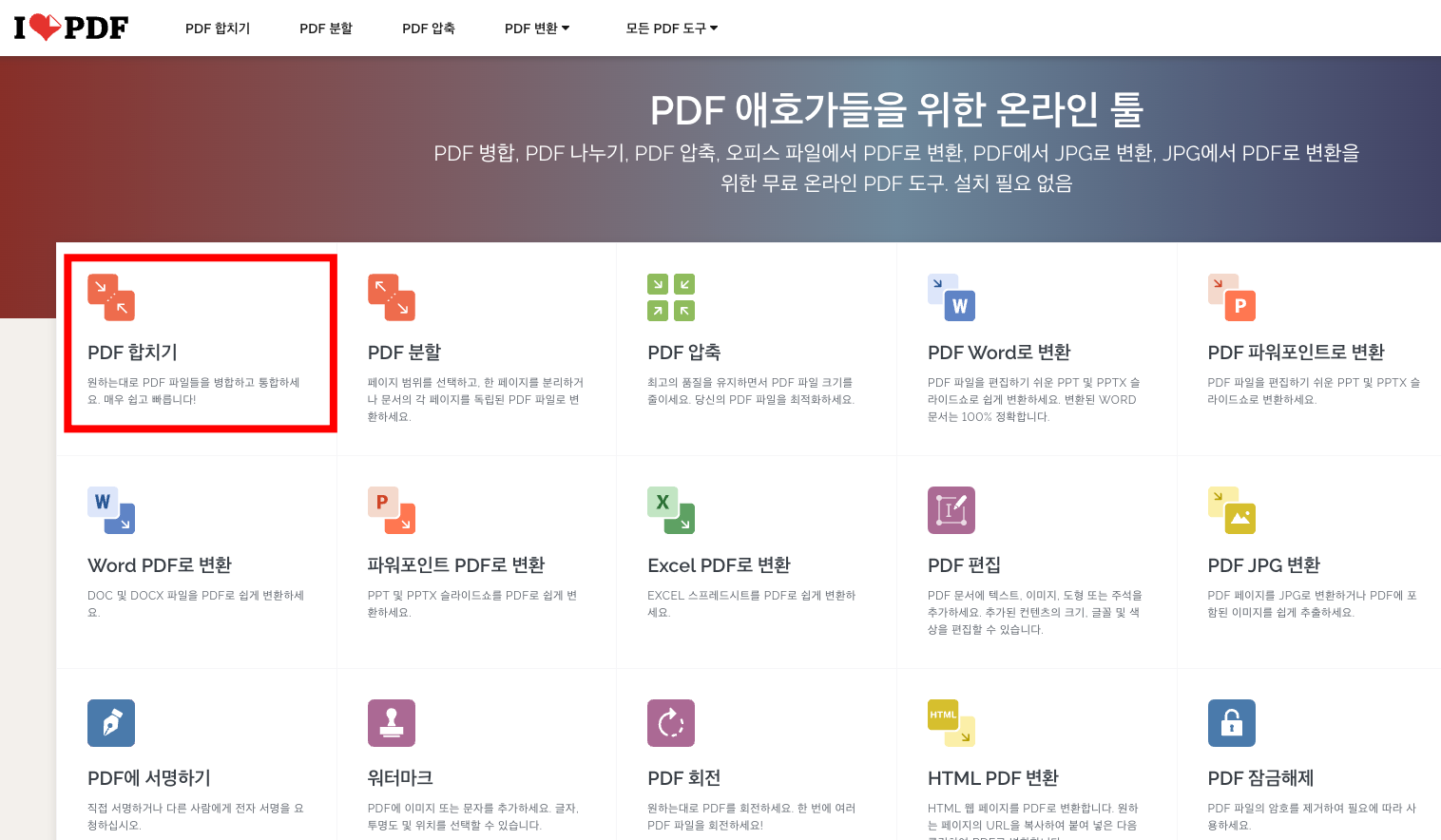 iLovePDF | PDF를 즐겨 쓰시는 분들을 위한 온라인 PDF 툴