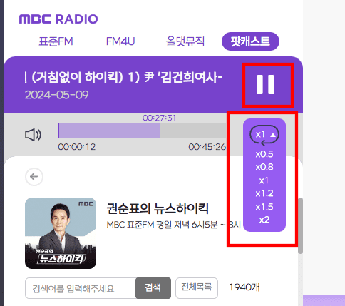 팟캐스트의 지난 회차에서는 재생 속도를 빠르게 하거나 느리게 할 수 있어 빨리 듣고 싶은 방송이 있을 때 이용하면 편리하니 직접 확인해 보시기 바랍니다.